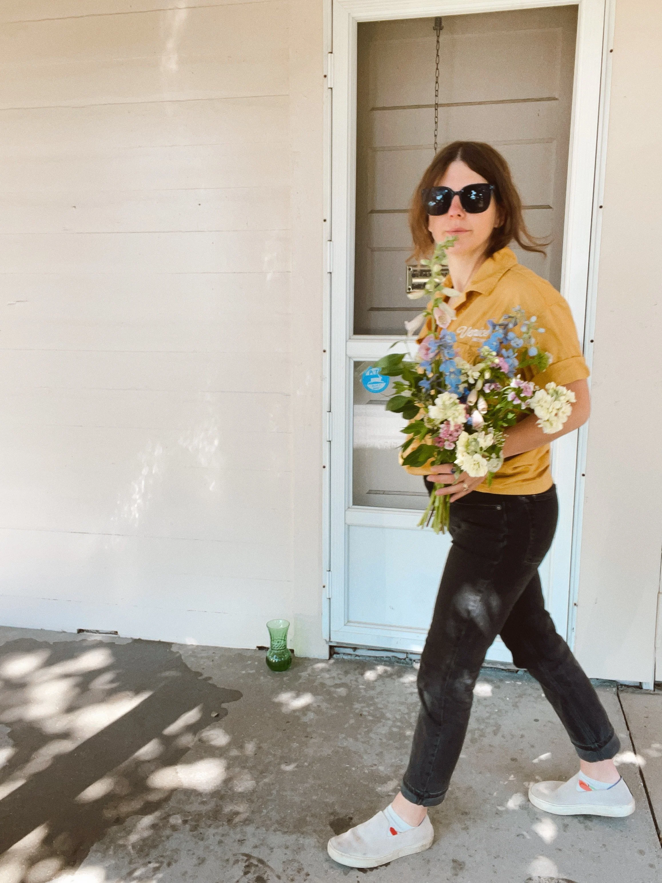 I came to flowers from literary publishing — years of editing fiction, running a magazine, and working with writers and artists. I've been designing wedding flowers across New York and New England for over eight years now. I like to make things that feel a little unexpected — arrangements that people actually notice and remember. When I'm not working, I'm with my two little kids, swimming, or driving around town in my '87 Volvo wagon, which is still in fantastic shape.
